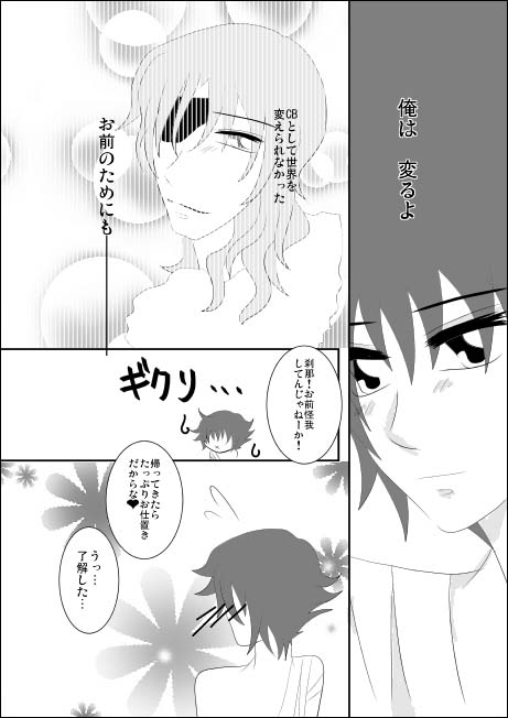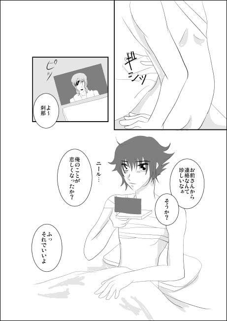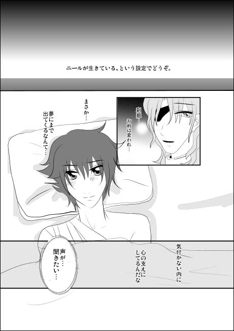 monochroX*Blogガンダム00(ロク刹)を中心に萌をイラストや漫画で語るブログ。妄想三昧。 [PR]× [PR]上記の広告は3ヶ月以上新規記事投稿のないブログに表示されています。新しい記事を書く事で広告が消えます。 第十七話感想☆2009/03/03 (Tue) - Ⅱ期アニメ感想(絵、漫画) どうも、ねこです。 アニメ感想、本日は第17話です。 アンドレイ!! かっ可愛い…!! ぱっつんなんて反則だw 刹那さんの裸…!! なんか、パイスーの半裸はやらしいですよ! おかげで映像とめてガン見ですよ! つか…あのパイスーどんな状態なんだ…?? リボンスはだんだん病んでるなぁ… 創造主であることにこだわっても根本は変らないのに。 ライルは熱いなぁ~ 一応後方支援型なのに つっこんでいきましたよ! ひゅぅー ←なにか間違った 守るための戦い… 刹那さんかっこいいよ… 変ることで痛みもあるだろうけど、 それでも前に進んでほしいよ! 自らの姿をさらして市民を救うことを選んだ スメラギさんの願いが痛いです。 一人でも多くの人に生き残ってほしい! あ、あ、 アンドレーイ!!!! 生きていれば、 いつか分かり合える日もきたかもしれない… その可能性すら自ら消してしまった… PR 第十六話感想☆2009/03/01 (Sun) - Ⅱ期アニメ感想(絵、漫画) どうも、ねこです。 アニメ感想、本日は第16話です。 日にちも経っているので短めで~ また、若かりし頃が! セルゲイさんの傷にはやはりエピソードがあるのかしら。 アンドレイは頑なだなぁ… 人には感情があるから難しいけれど 物事は片面から見ていると必ず偏りがでるんですよね… 難しいことだけど… 広い視点をもつ人になりたいと改めて感じます。 今日はおっさんのターン! と思ったらやっとせっちゃんのターン! いつでも、ロックオンの言葉を胸に… 次回、メメントモリ第二号ー!!! なんか、おっさんのターンで 話がトントン進むから思ったより感想書けませんでした(汗) 第十五話感想☆2009/02/27 (Fri) - Ⅱ期アニメ感想(絵、漫画) 感想…というより、アニメ妄想漫画w(全3P)
