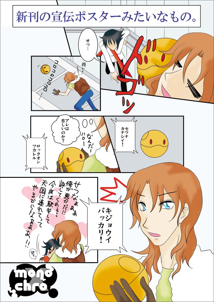 monochroX*Blogガンダム00(ロク刹)を中心に萌をイラストや漫画で語るブログ。妄想三昧。 [PR]× [PR]上記の広告は3ヶ月以上新規記事投稿のないブログに表示されています。新しい記事を書く事で広告が消えます。 脱稿しまし…た…ぐはっ毎度ネタ考えるの楽しい&大変です。恒例、新刊のパロ☆ PR 全国大会お疲れ様でした☆本日のイベント向けに作ったポスター