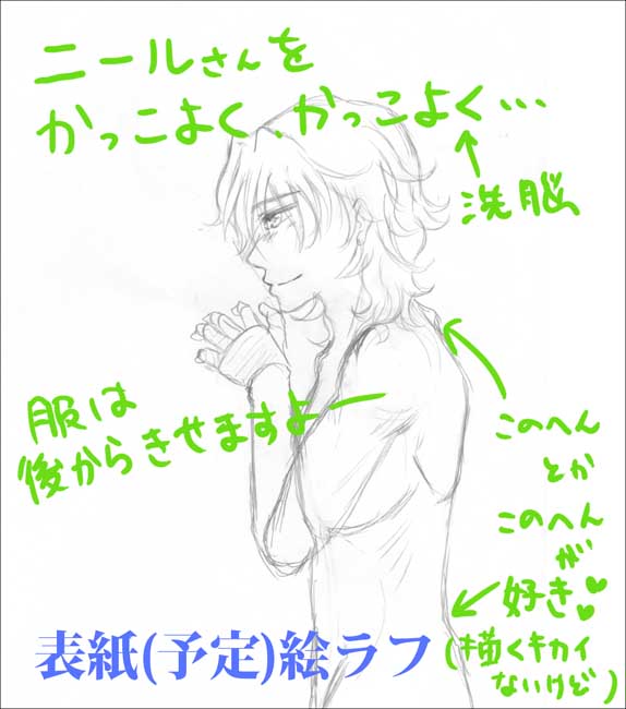 刹那オンリーに向け、 新刊のプロットと戦っております!!! すごく描きたかった話を起こしてるので とっても楽しいんですがページ数多すぎて…やばそう… その上、毎日、 毎日、 毎日、自分が作った話を読むので 若干飽きてきました(笑) そこで、気分転換に表紙に着手しております! ニールさんを少しでもかっこよく描きたいので 自分を洗脳しながら描いてます。 (ニールさんは、もっと格好いいんだ…ぶつぶつ…) 表紙はもちろん刹那とニールさんの二人ですが、 刹那はこれから描こうと思います♪ こっから素敵な言い訳なんですが…(*'ω`*) 現在作成中の本は、刹那オンリーに合わせを目標に頑張りますが、 今までと比べてもページ数が半端無いので 間に合わないようなら躊躇なく春コミ合わせにしとうと思います。 前後編もいいけど、やっぱり分厚い一冊にあこがれる ねこがお送りしました~ノ ポチっと送って下さった皆様ありがとうございます! こっちはモソモソ更新ですがたまーに萌を吐き出しにきますので よかったらたまに見てやってください♪ |